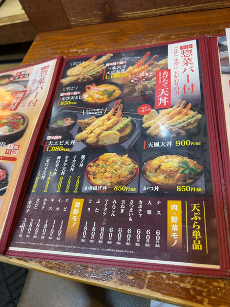 お品書き 萩原店天風。