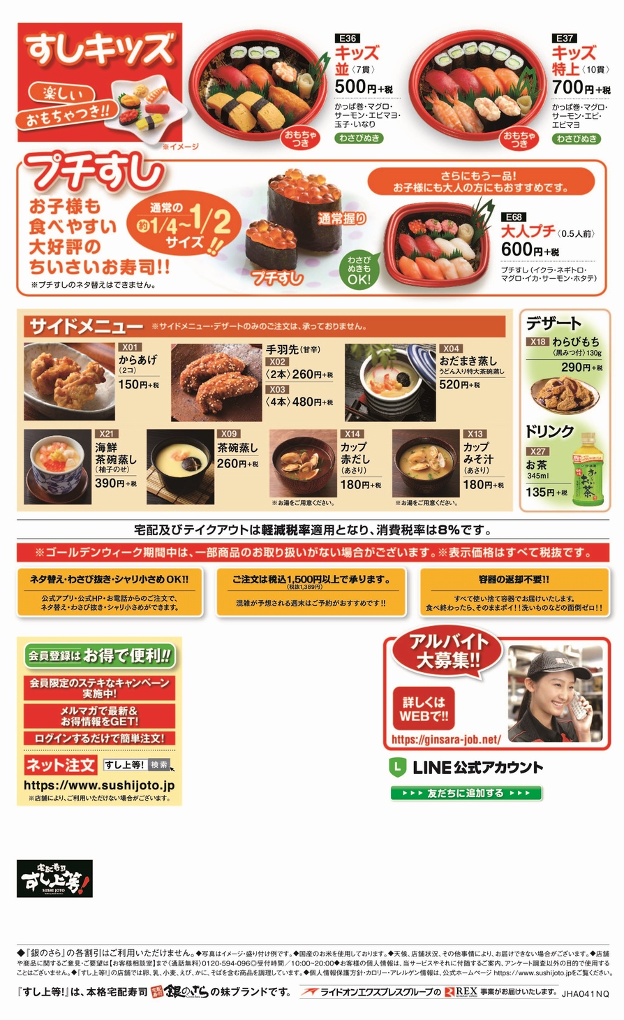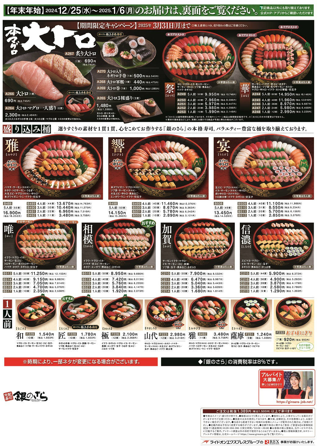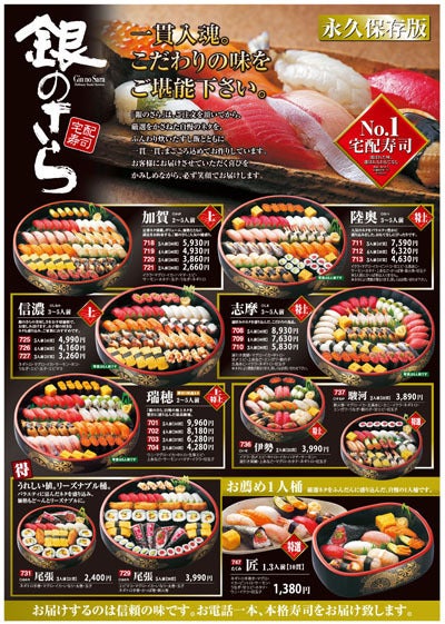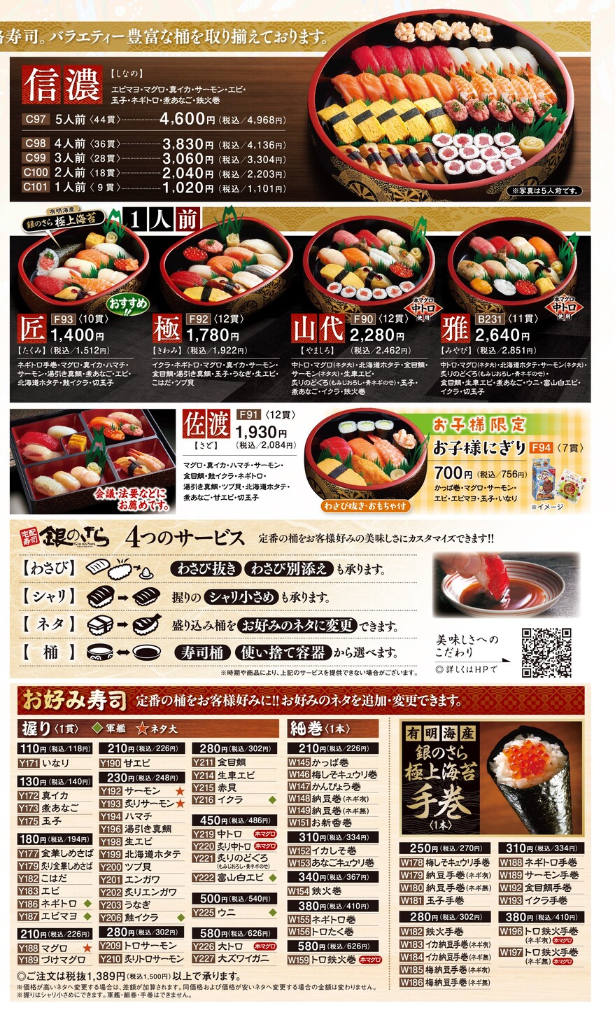 銀のさら メニューチラシお寿司の宅配・出前・デリバリ。