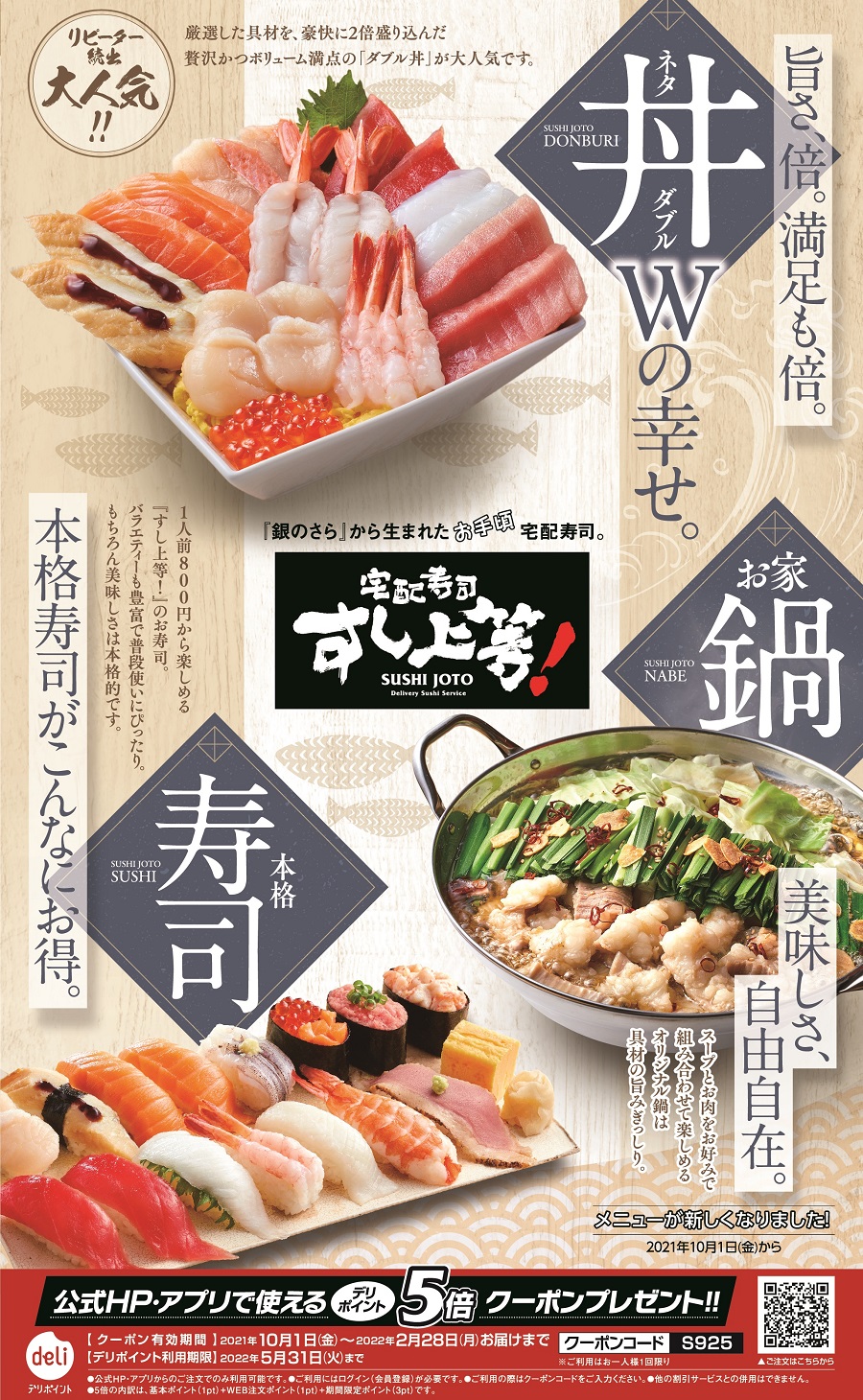 すし上等! メニューチラシ お寿司の宅配・出前・デリバリ。