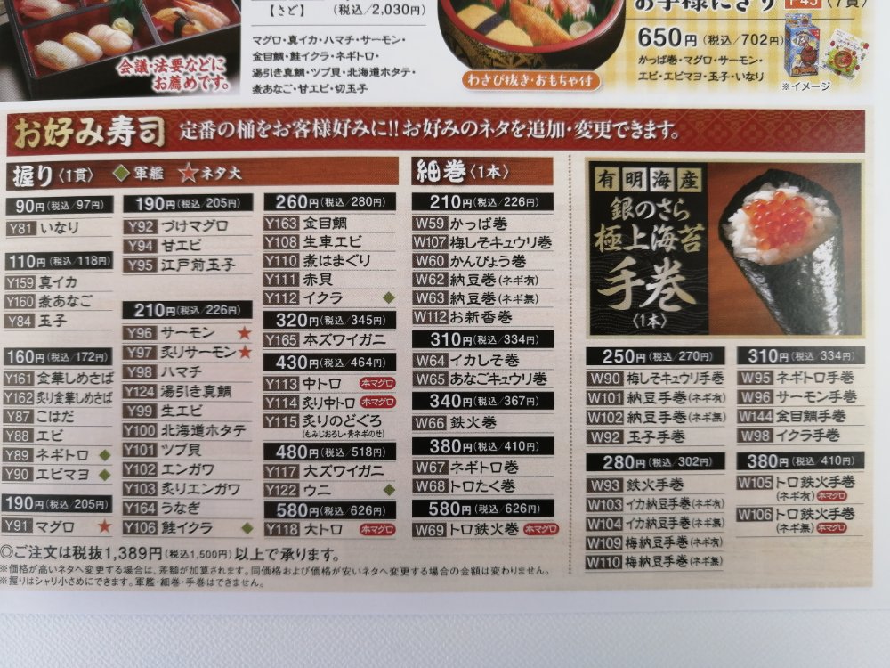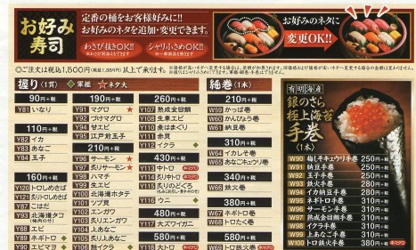 ぽんきち御用達出前メニュー『宅配寿司 銀のさら』 『宅配御膳 釜寅』紹介: ギタリストぽんきちのブログ。