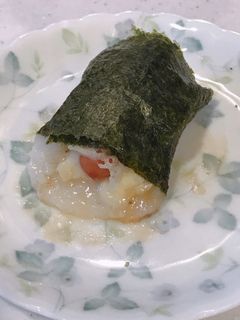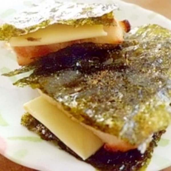 レンジで簡単☆ハム巻きチーズ磯辺餅。