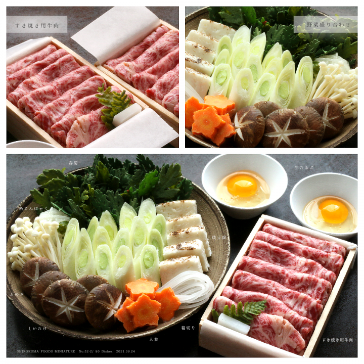 すき焼きの材料 野菜&お肉新家屋&お料理シーン製作日記 91しろくまミニチュア製作日記。