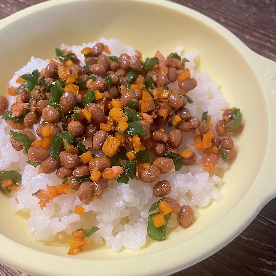 @aya_babygohan◀︎簡単にラクに作れる離乳食レシピ紹介中😋, 「作ってみよう!」ってママはぜひ ❤️ をクリック!,コメント、つくレポとってもうれしいです🌟, 保存していつでも見返してね🌱, こんにちは!あやです🐣,今日は「レンチンで!納豆チャーハン」です!, 毎日暑くて、火使うの嫌じゃない?, これだと栄養もたっぷりだし、レンチンだけだから,簡単にできちゃう!,。