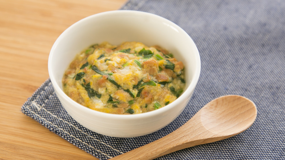 白菜納豆がゆ 作り方・レシピ 離乳食後期9~11ヶ月ごろたまひよ。