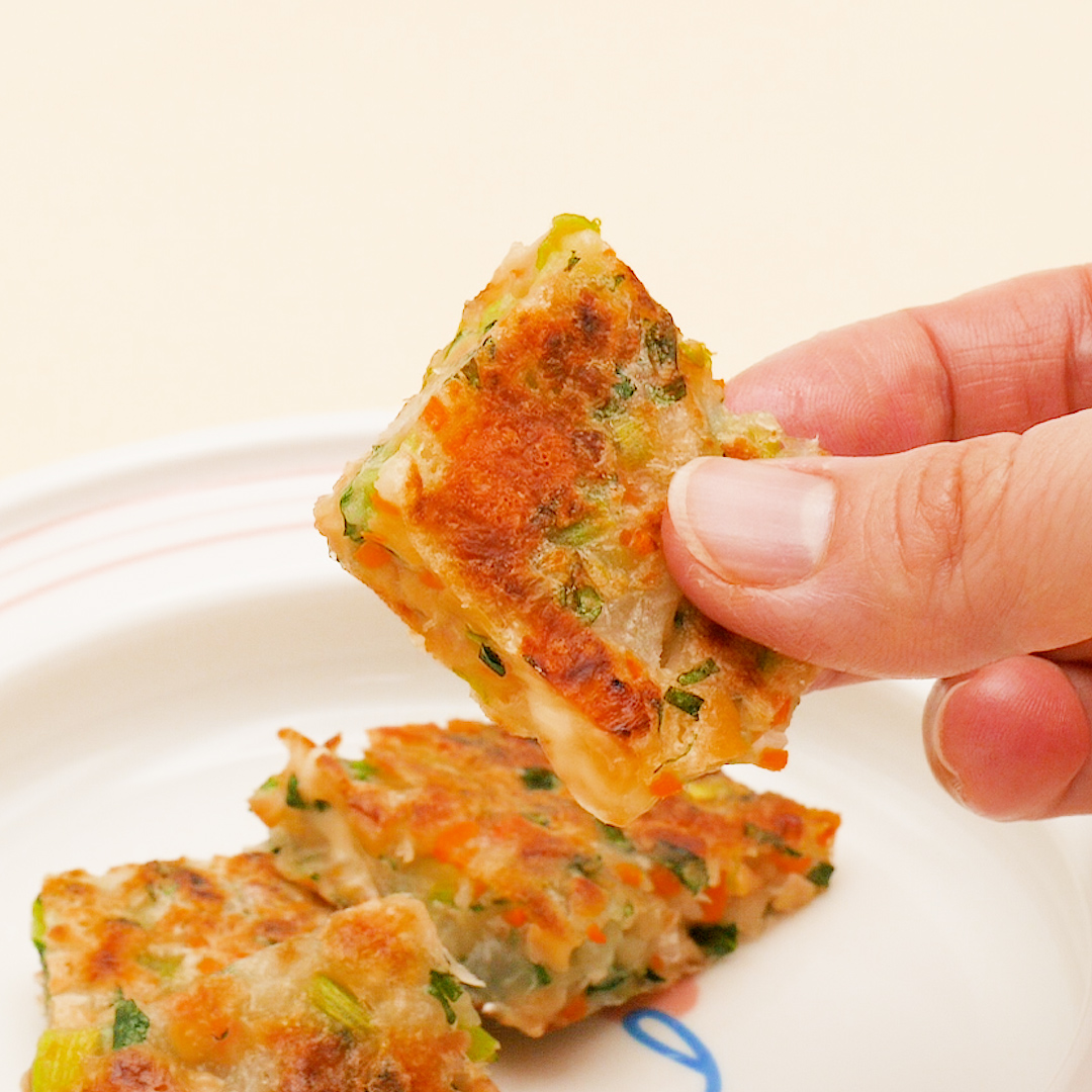 手づかみ食べOK「納豆入りごはんのオムレツ」幼児食・離乳食後期レシピ作り方にじいろランド note園。