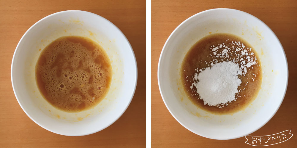 全卵使用。レンチンで作る米粉のカスタード - 米粉おやつLabo。