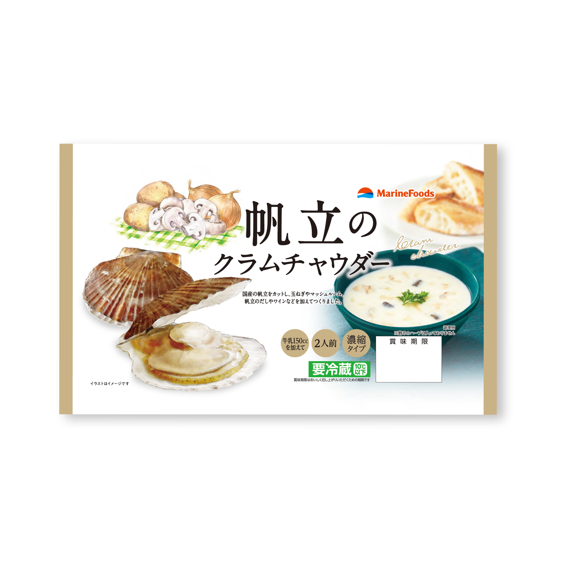 帆立のクラムチャウダー商品情報マリンフーズ。