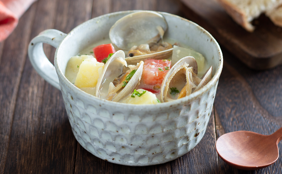 牛乳たっぷり♪具沢山クラムチャウダー安全・安心な富士山麓の天然水を使用したウォーターサーバー・宅配水ウォーターサーバーのうるのん TOKAIグループ 公式。
