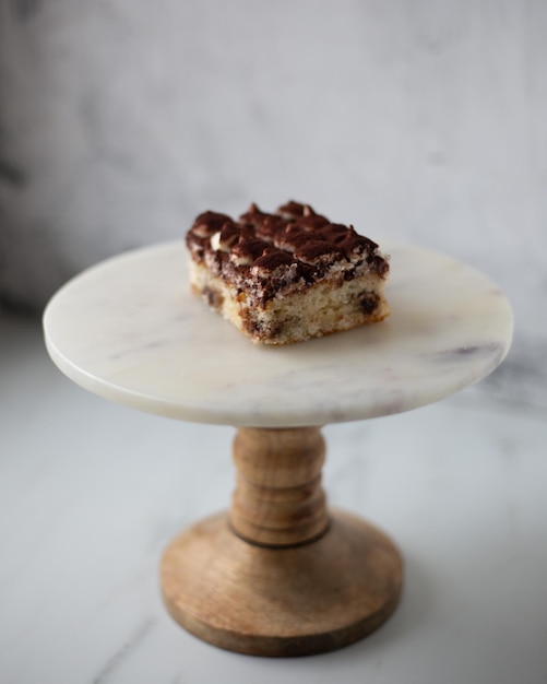 大理石のベースが付いたケーキスタンドに置かれたケーキ。Premium写真。