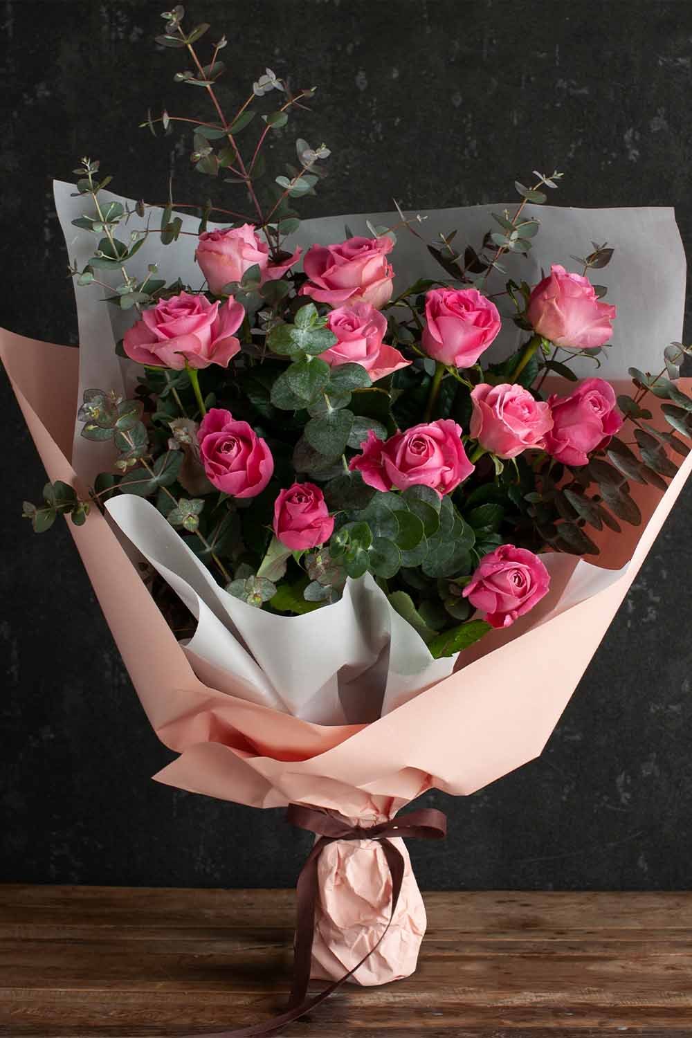 花束 ラッピング付き ピンクバラの花束催し会場や行事を飾る花お祝い・お供えの花通販ギフトは送料無料の お花の窓口 へ。