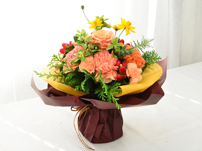 花束 ラッピング付き イエロー&オレンジお祝い・お供えの花通販ギフトは送料無料の お花の窓口 へ。