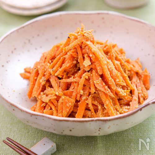 ただレンジでチンして和えるだけ超簡単!お弁当にももう一品にも!『にんじんのゴマ和え』の作り方 - てぬキッチン。