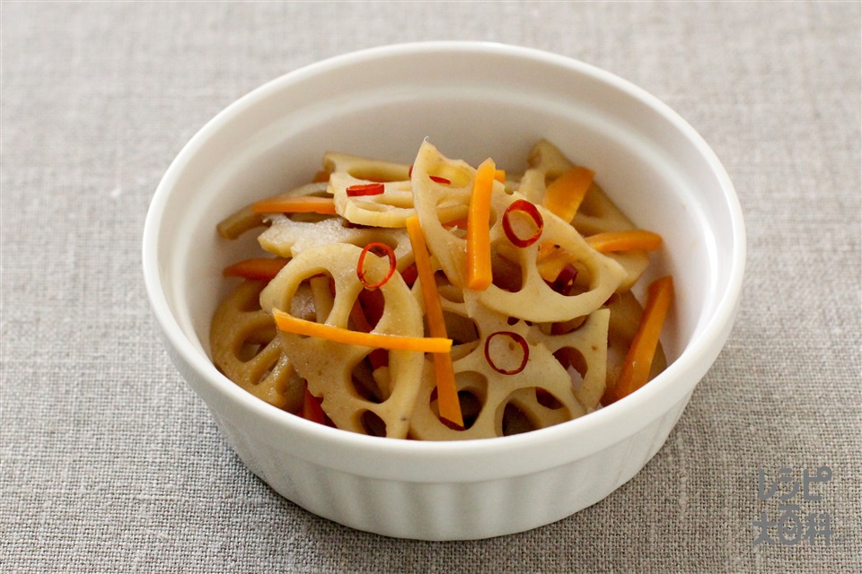 パパっとレンチン副菜!蓮根と人参のゴマドレサラダのレシピ。