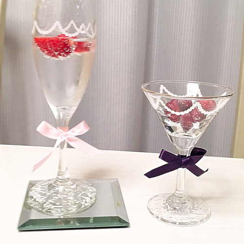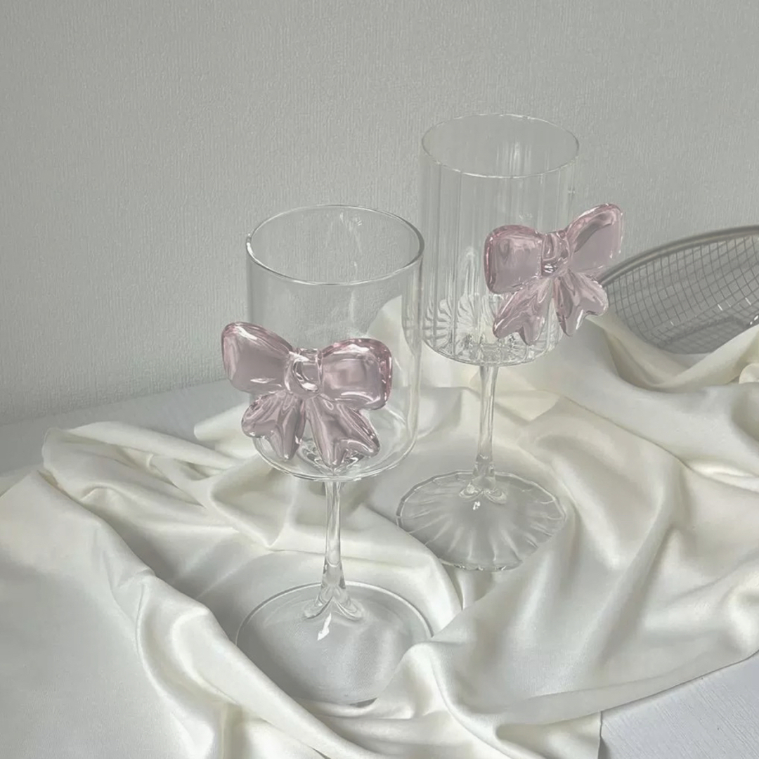 リボン付きワイングラス ペアセット エレガント&キュートなデザイン 可愛い リボンデザイン ワイングラス。