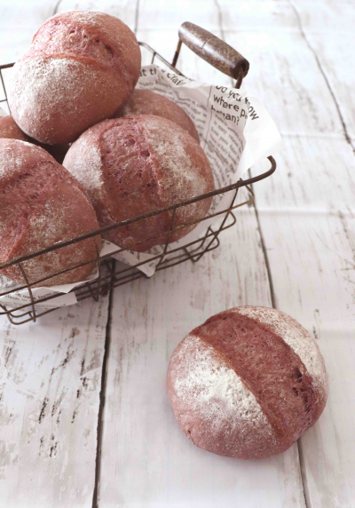 イーストで作る「紫芋あずき蒸しパン」。