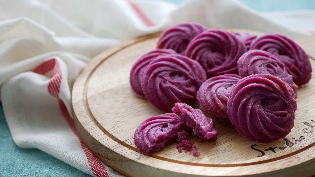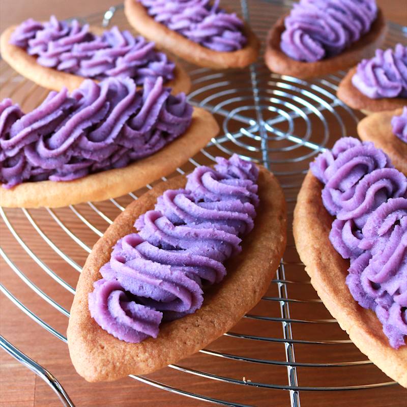 紫芋の絞り出しクッキー Purple Yam Squeeze cookies。