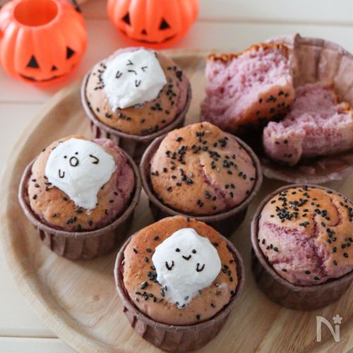 ハロウィン 紫芋のパンプキンマフィン。