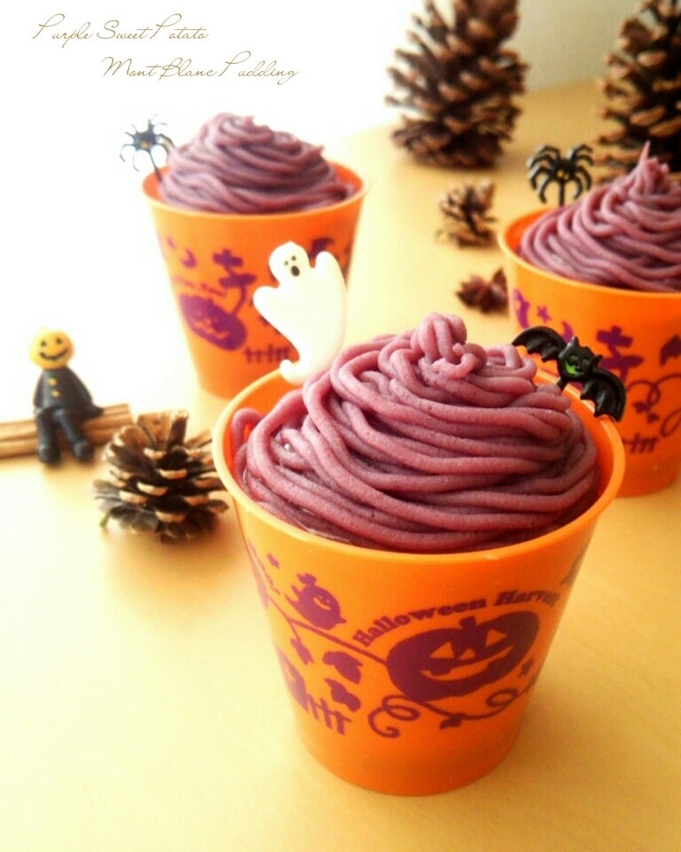 ハロウィンにおすすめ♪紫芋パウダーと生クリームを使ったレシピ3選の人気レシピ・作り方デリッシュキッチン。