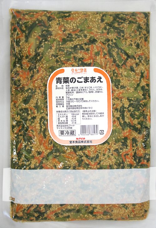 堂本食品 青菜のごまあえ 1kg業務用の弁当惣菜・リパック惣菜をお安く「カクイチ横丁 どっさり商店」。