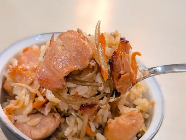 鶏肉と舞茸のホロホロ炊き込みご飯レシピ。