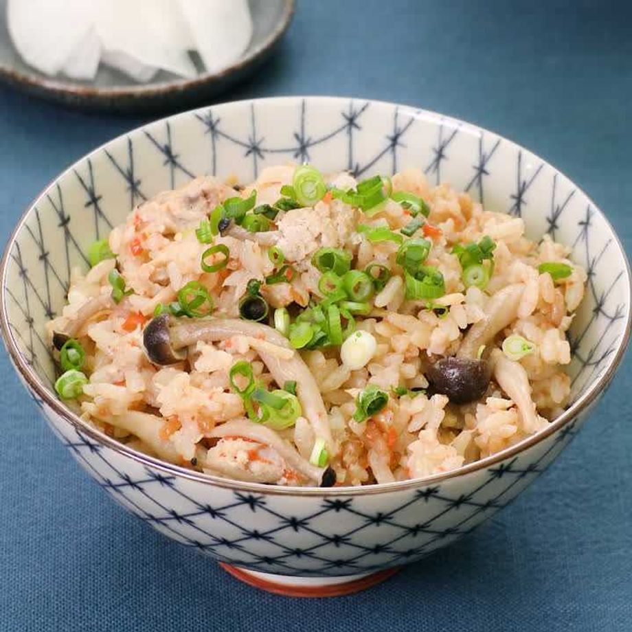 3合炊き炊飯器で! 鶏むねとしめじの炊き込みごはん。