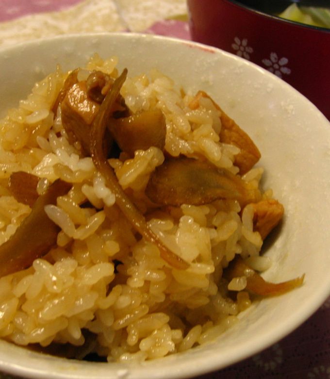 3合炊き炊飯器で! まいたけと鶏肉の炊き込みごはん。