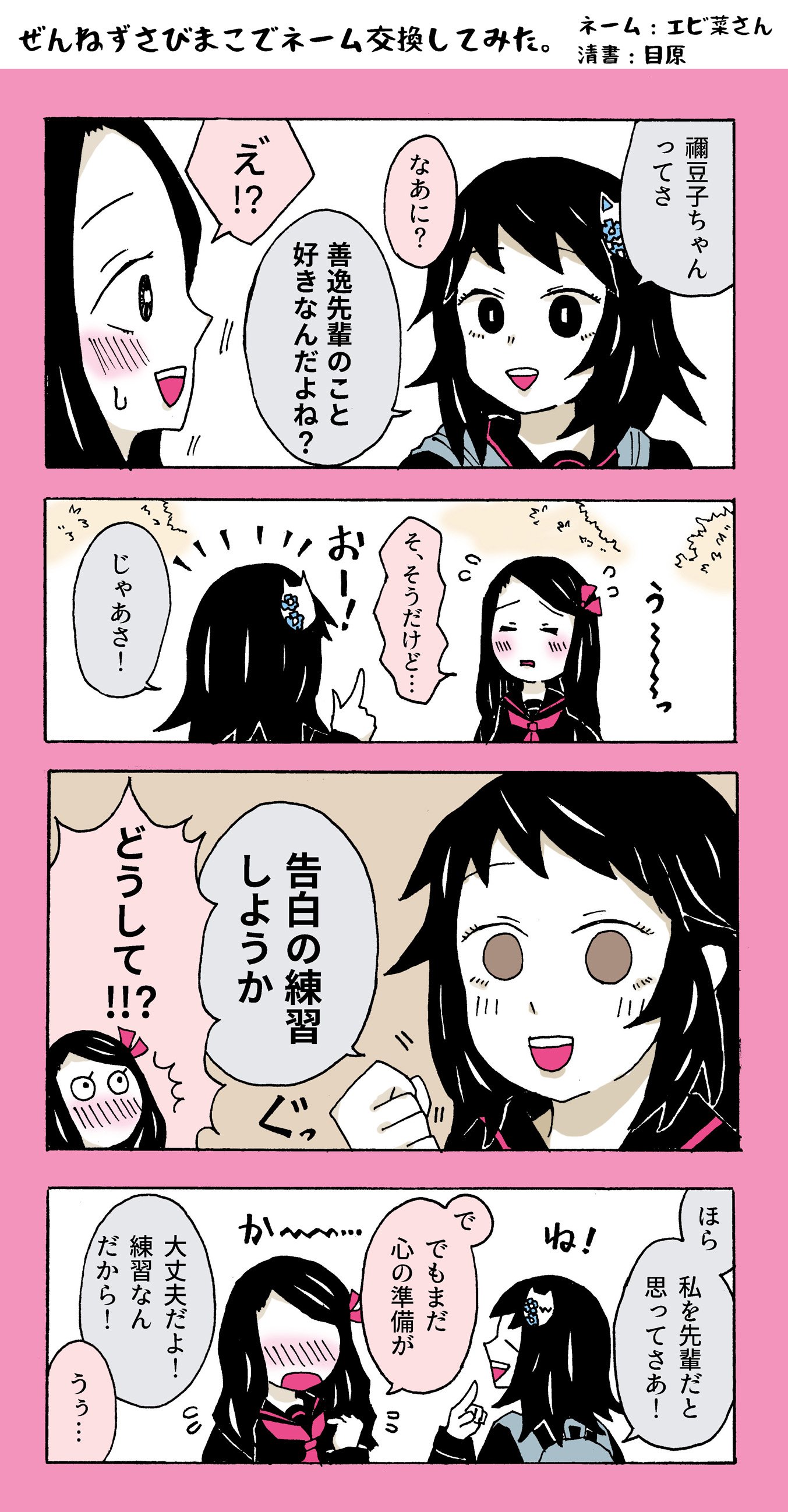 目原 on X: "「ぜんねずさびまこでネーム交換してみた」 エビ菜さん @MHA_ABNa とネームの交換をさせていただいたものです。ものすっごい描いてて楽しかったです。 サービスでさびまこ要素つけていただきました!笑 https:t.co sOW0i6Qkq4"X。