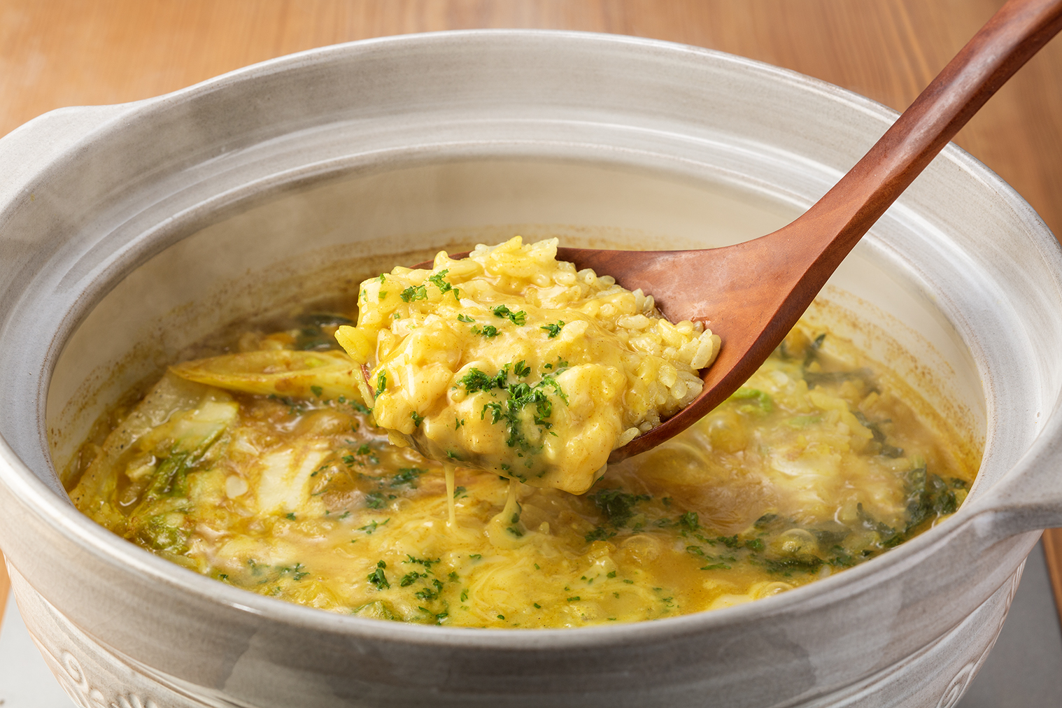 寄せ鍋の〆カレーリゾットレシピハウス食品。