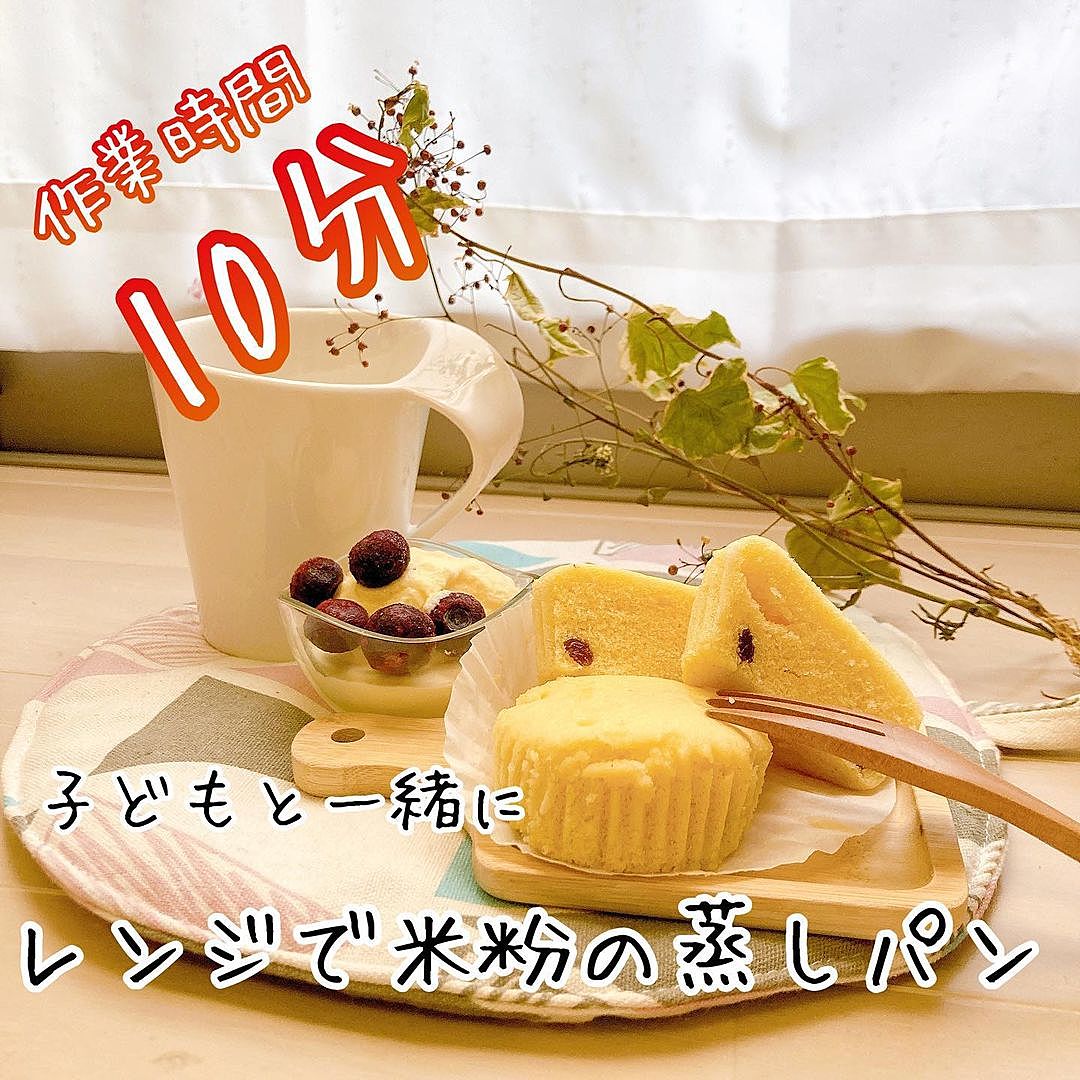 レンジで簡単!卵・油なし❣️ もちもち米粉蒸しパンレシピひまごはん、ひよおやつ。ひまひよのお母ちゃんのブログ。