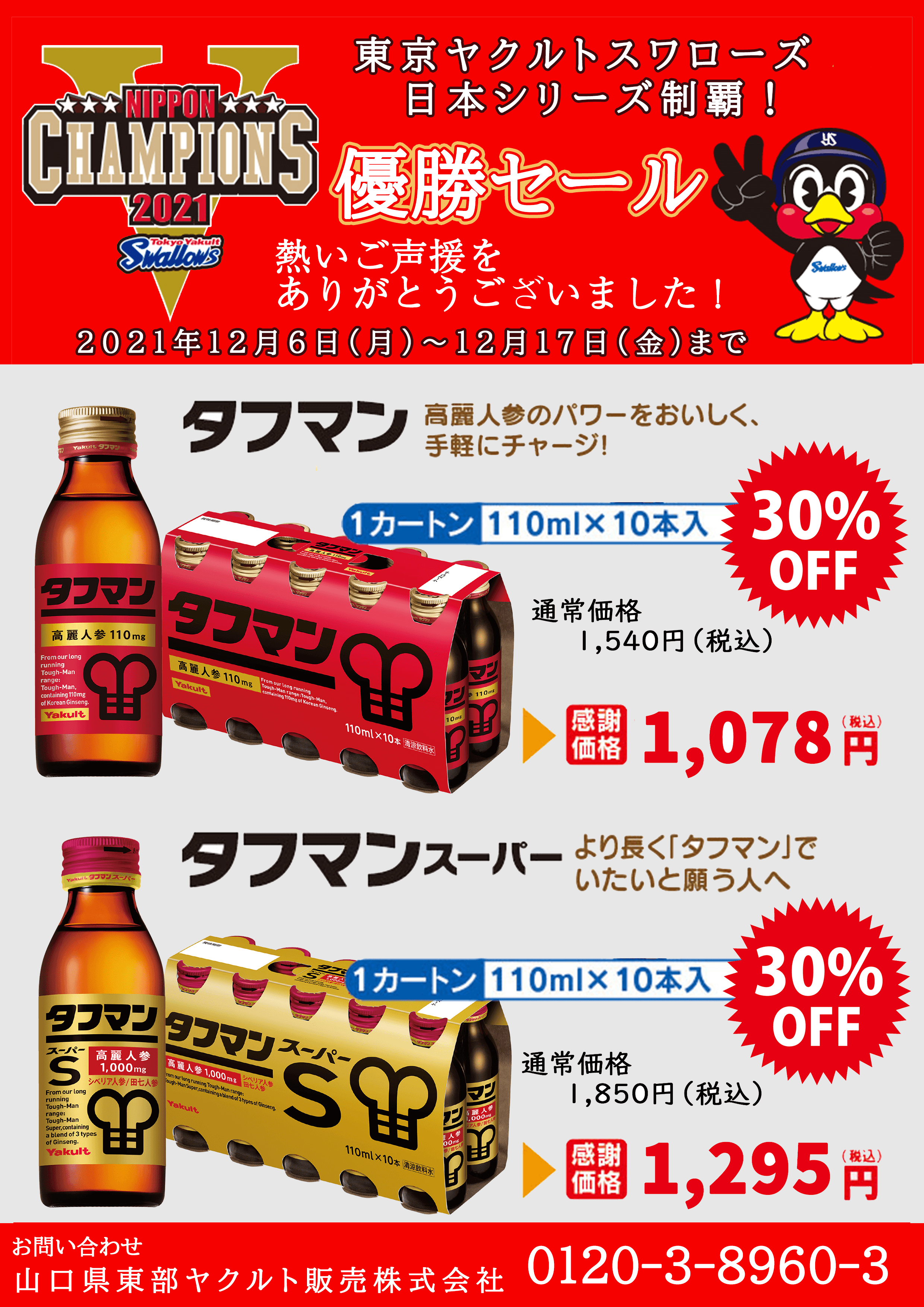 日本シリーズ 東京ヤクルトスワローズ優勝セール実施のお知らせ。