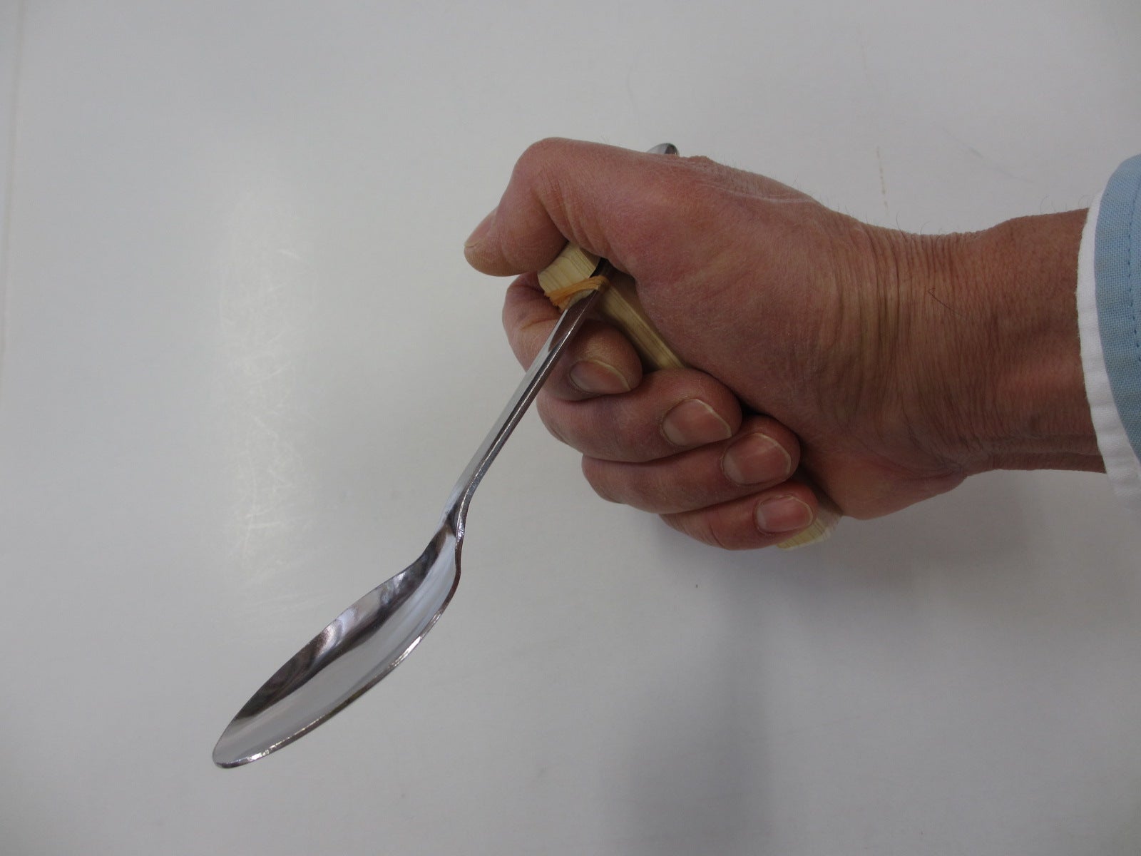 木片式、簡易スプーンホルダー自助具・片手編み機・リハビリ道具。