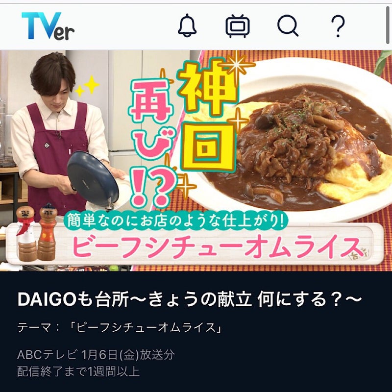 ビーフシチューオムライス公式 DAIGOも台所~きょうの献立 何にする?~。