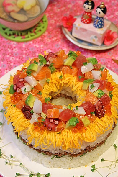 雛祭り海鮮リングちらし寿司ケーキ☆ぱおのおうちで世界ごはん☆。