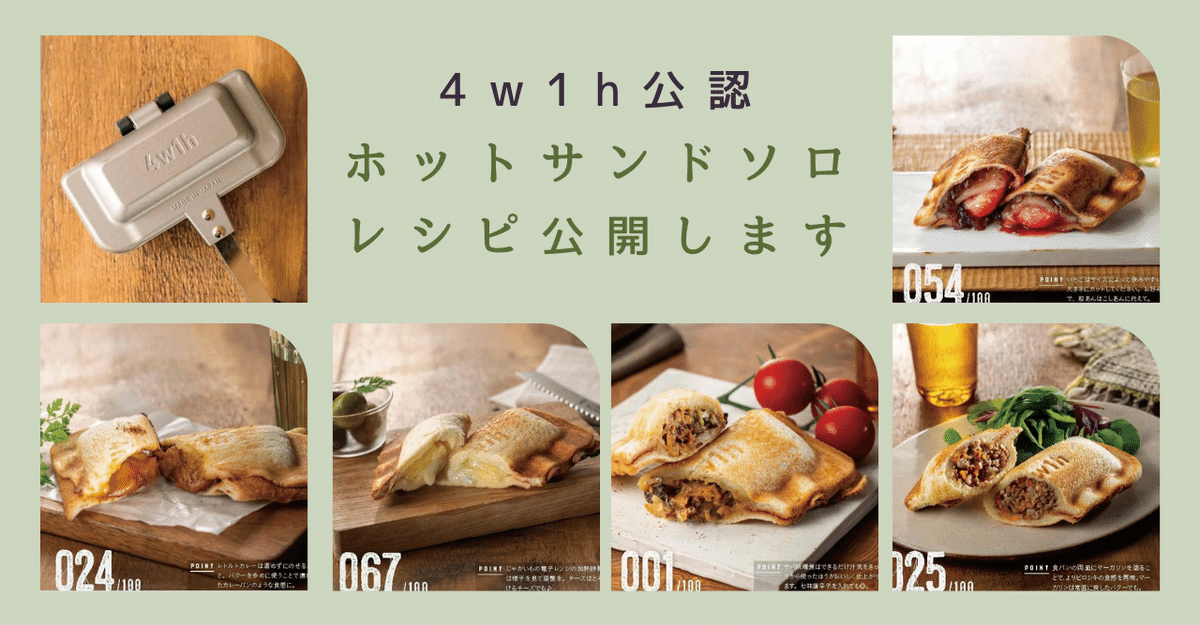 4w1h®ホットサンドソロ公認」☆ひとりぶんのホットサンドレシピ公開大和書房。