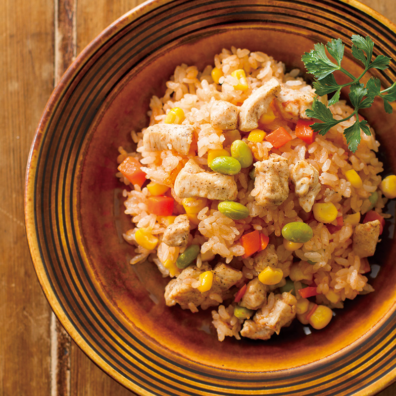 簡単!炊飯器で作るピリ辛ジャンバラヤ風ピラフ。