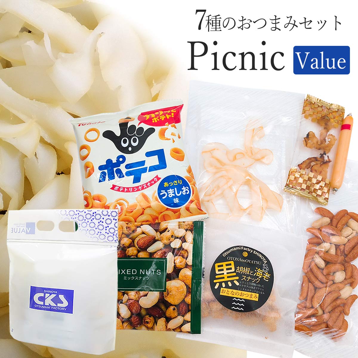 7種のおつまみ セット 旅行のおつまみ・お菓子 詰め合わせ 一人前の7種類のおつまみ ピクニックvalue。