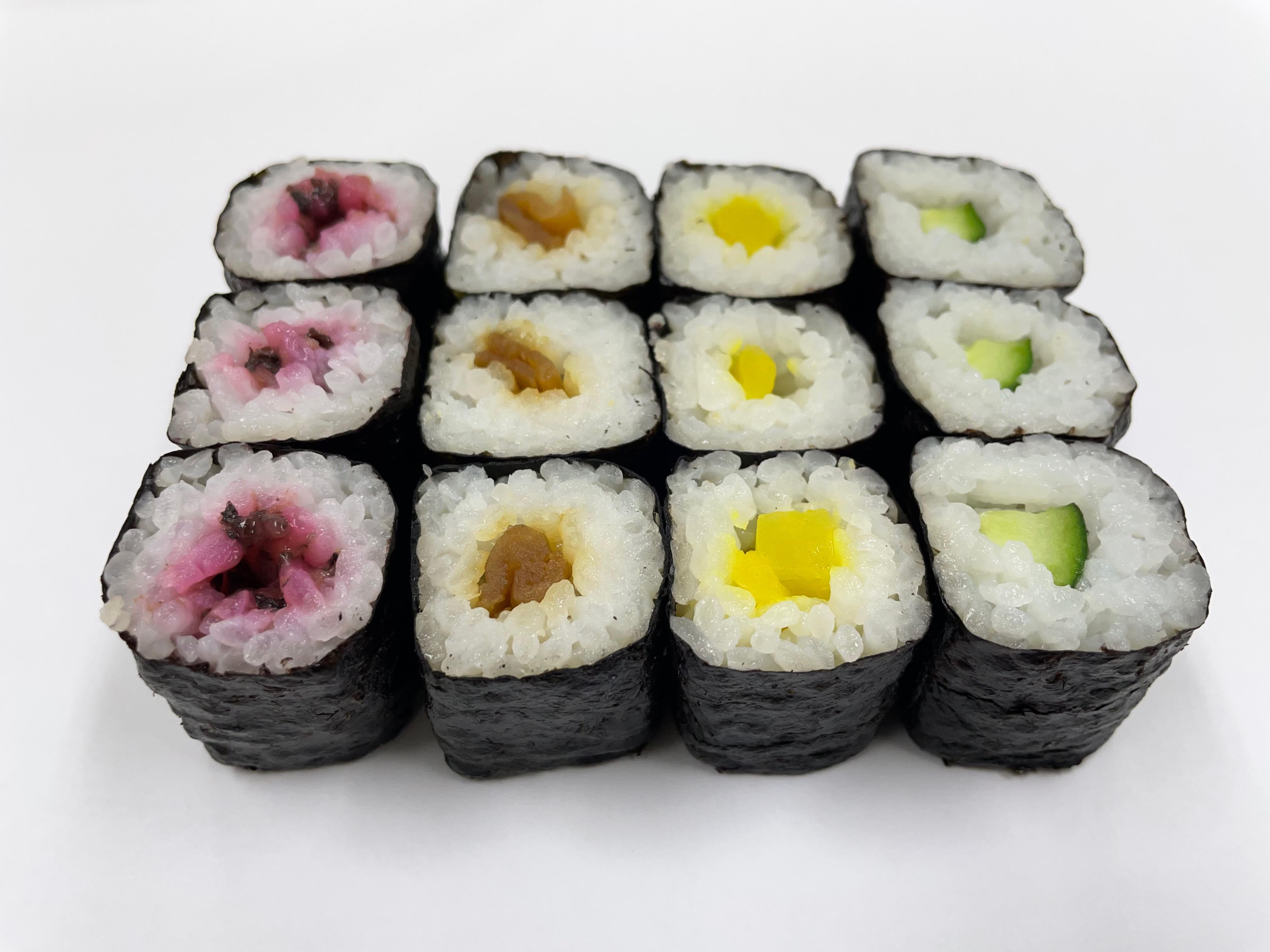 寿司屋直伝三色巻き 鉄火・かっぱ・たくあん。