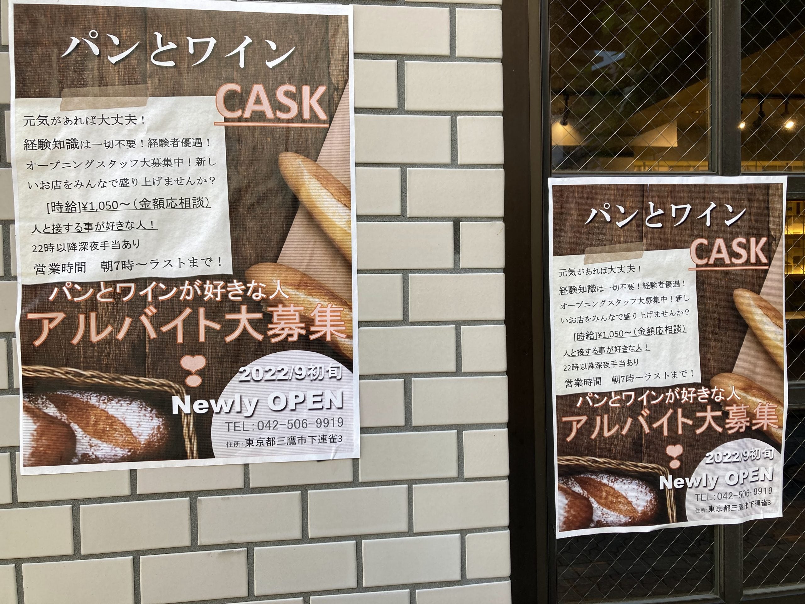 開店 パンとワイン『CASK』9月初旬@三鷹駅南口赤鳥居通りリビングむさしのWeb。