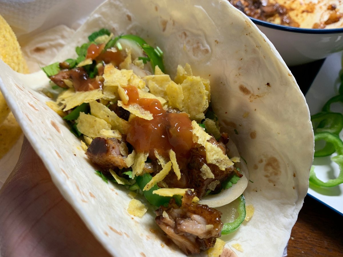 簡単で本格的なタコスの作り方, どんな食材にも合うトルティーヤですが、本格的なタコスを家ですぐに食べたい時に作るタコス。,それはインド料理屋さんのタンドリーチキンを使ったタコスです。, 炭火で焼かれたタンドリーチキンはメキシコでよく行くチェーン店のタコス屋さんPolloFelizにとても似ています。, Pollo Felizではスパイスにつけた鶏肉を炭火で焼き、タコスにして食べます。,。