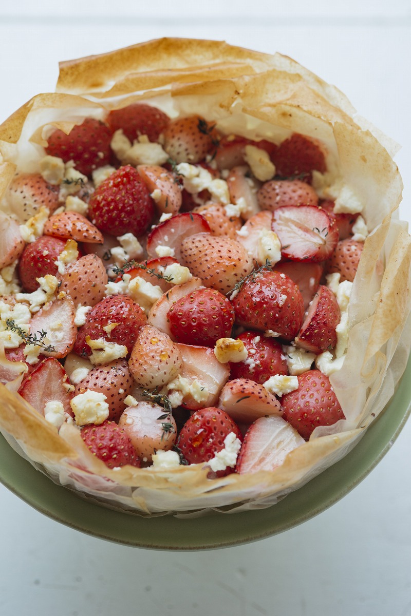 白ワインにも合う大人のデザート「いちごとフェタチーズのパート・フィロ パイ」おうちごはん。
