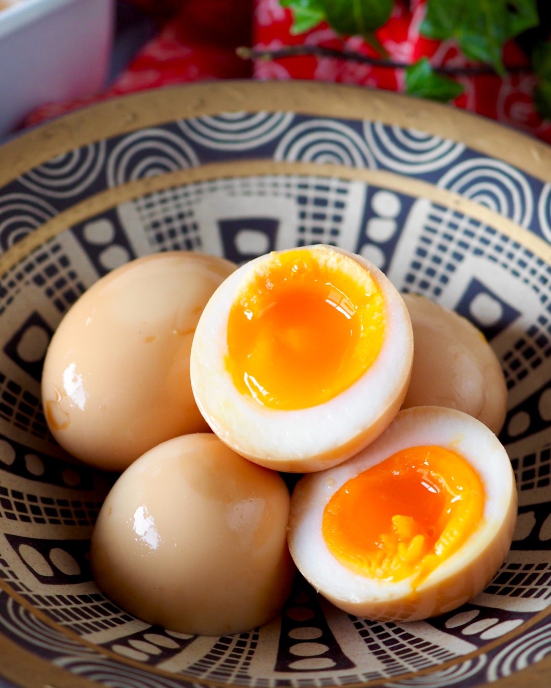 半熟ゆで卵のピリ辛コチュジャン煮レシピ。失敗したゆで卵のリメイクにもカライチ。