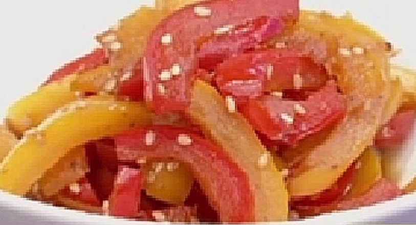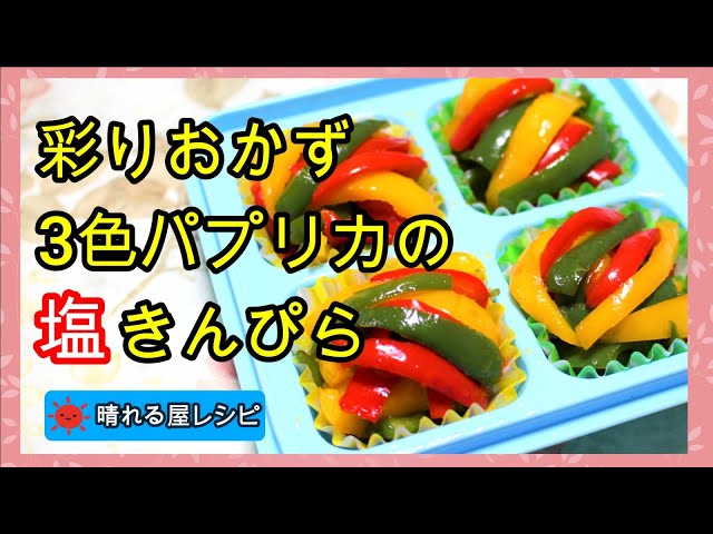 彩りおかず☆3色パプリカの塩きんぴら - YouTube。