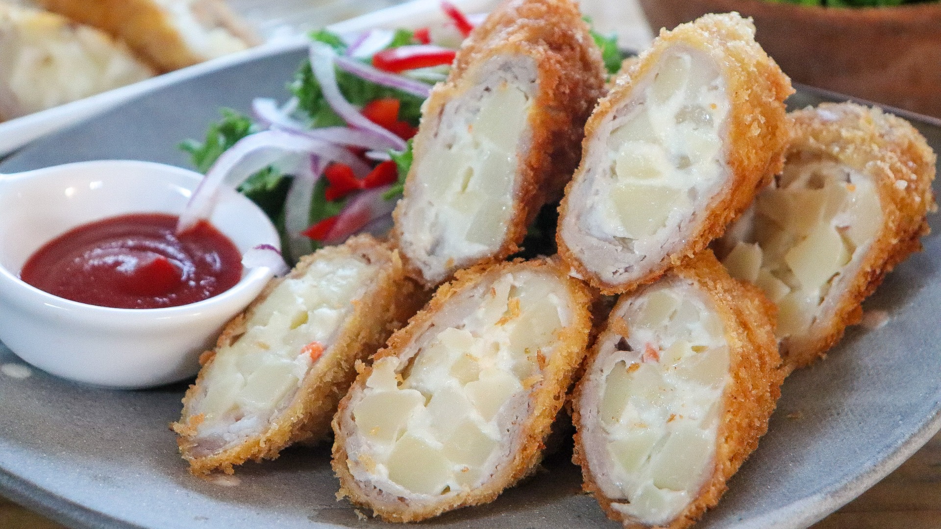 ポテサラリメイク!チーズin肉巻きポテサラコロッケ。