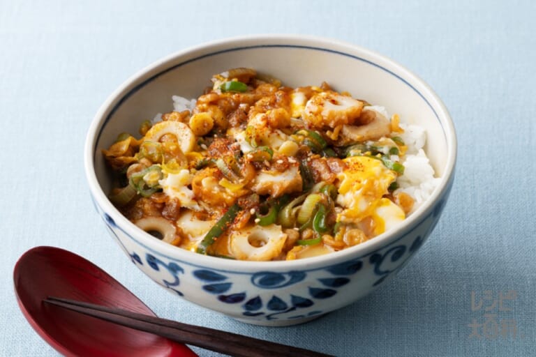 レシピ:納豆、たくあん、揚げ玉の卵かけご飯 : 読売新聞。