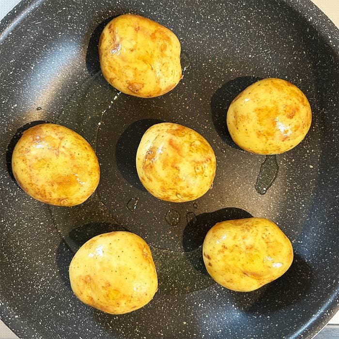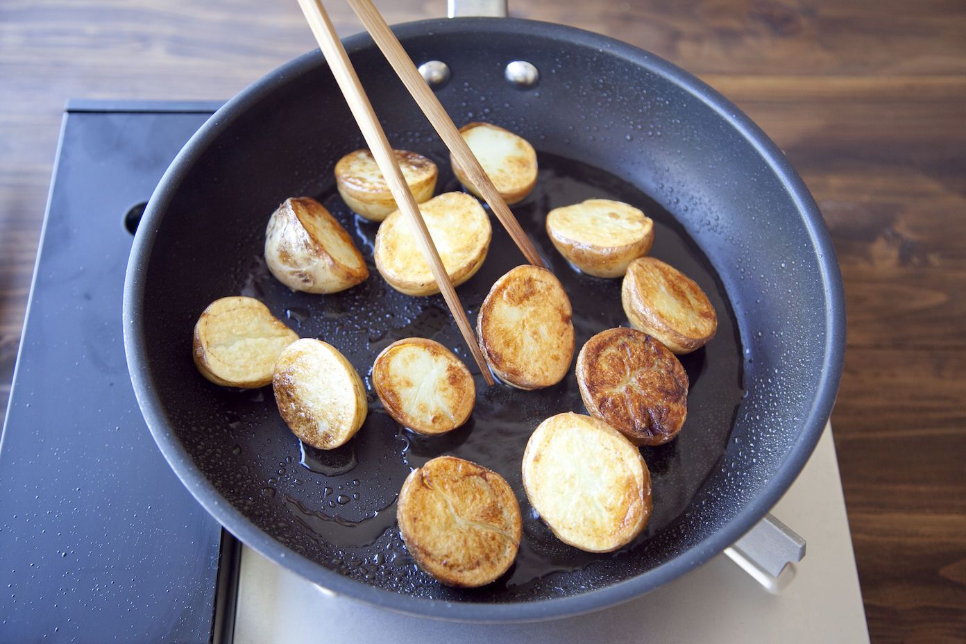 少量油、フライパンでつくる 新じゃがのフライドポテト。