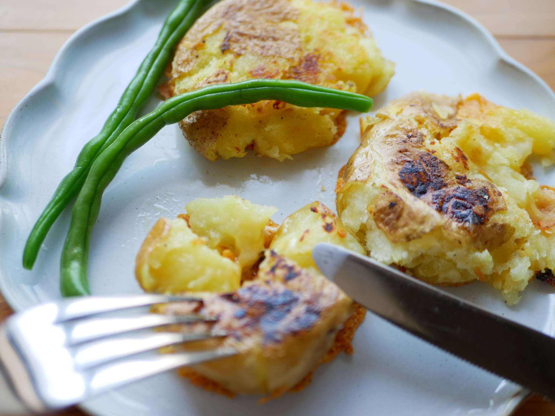 注目のじゃがいもだけレシピ。フライパンで「スマッシュドポテト」の簡単な作り方 - macaroni。