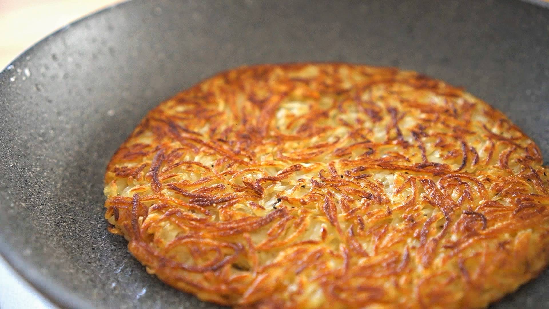 揚げずにカリカリ!ホクホク!じゃがいもだけで作れる「じゃがいもガレット」 フライパンで簡単材料3つ。