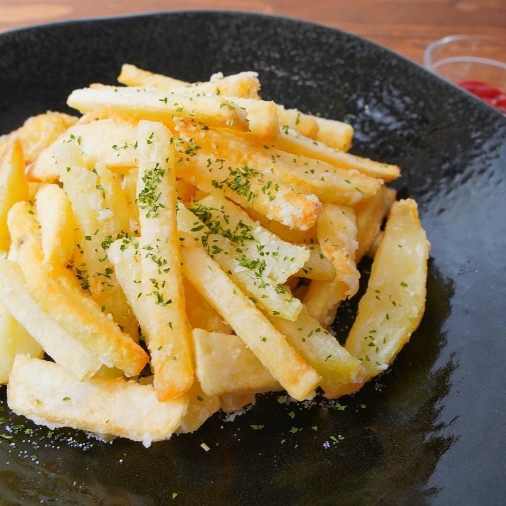 切った「じゃがいも」に薄力粉をまぶして1cmの油で揚げるだけ。お店のようなサクサク「フライドポテト」。