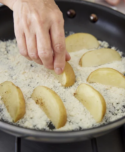 フライパンだけで簡単絶品おつまみ!カリカリじゃがいもチーズ焼き。