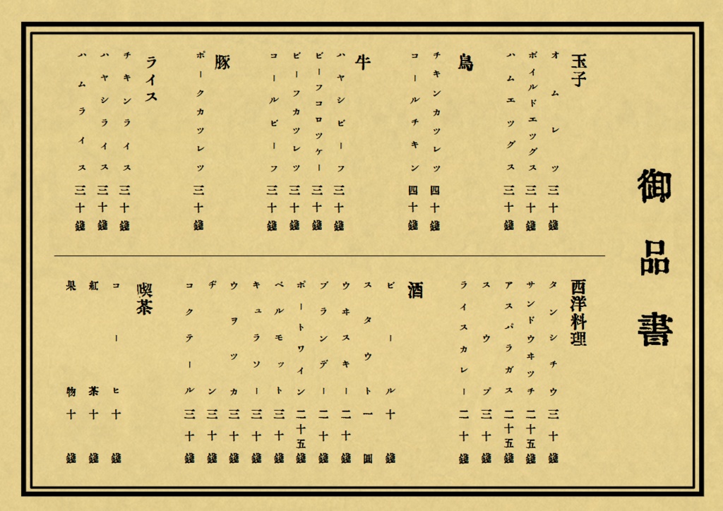 TRPG 大正時代メニュー表 素材- つぶぞろヰ - BOOTH。